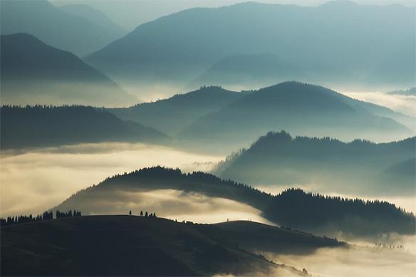 日本の風景に多く見られる大小様々な三角の山々が連なる美。