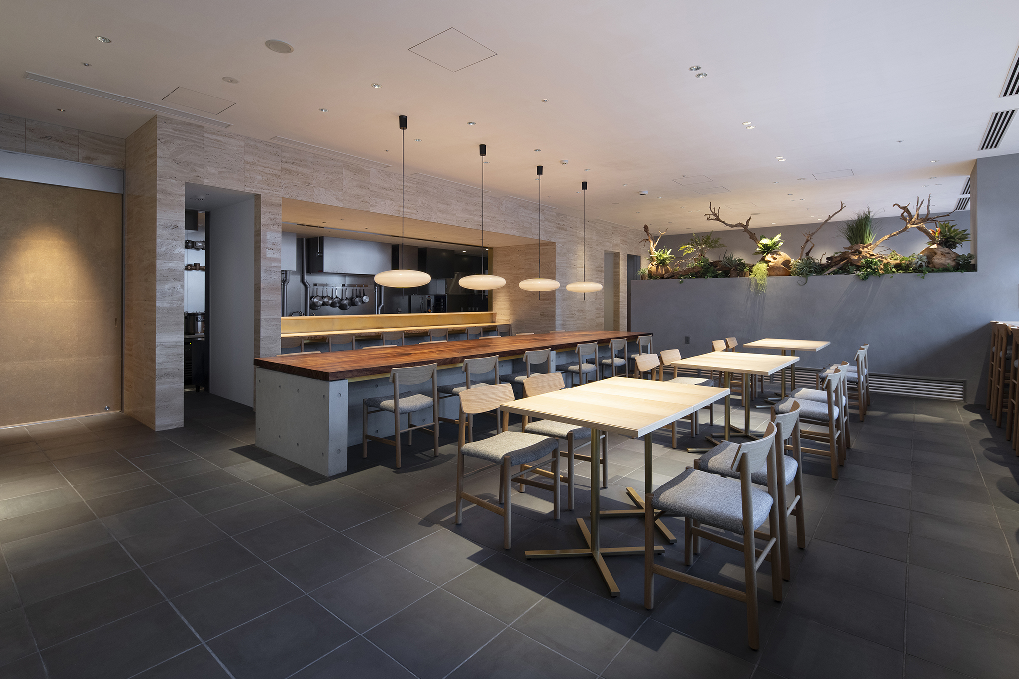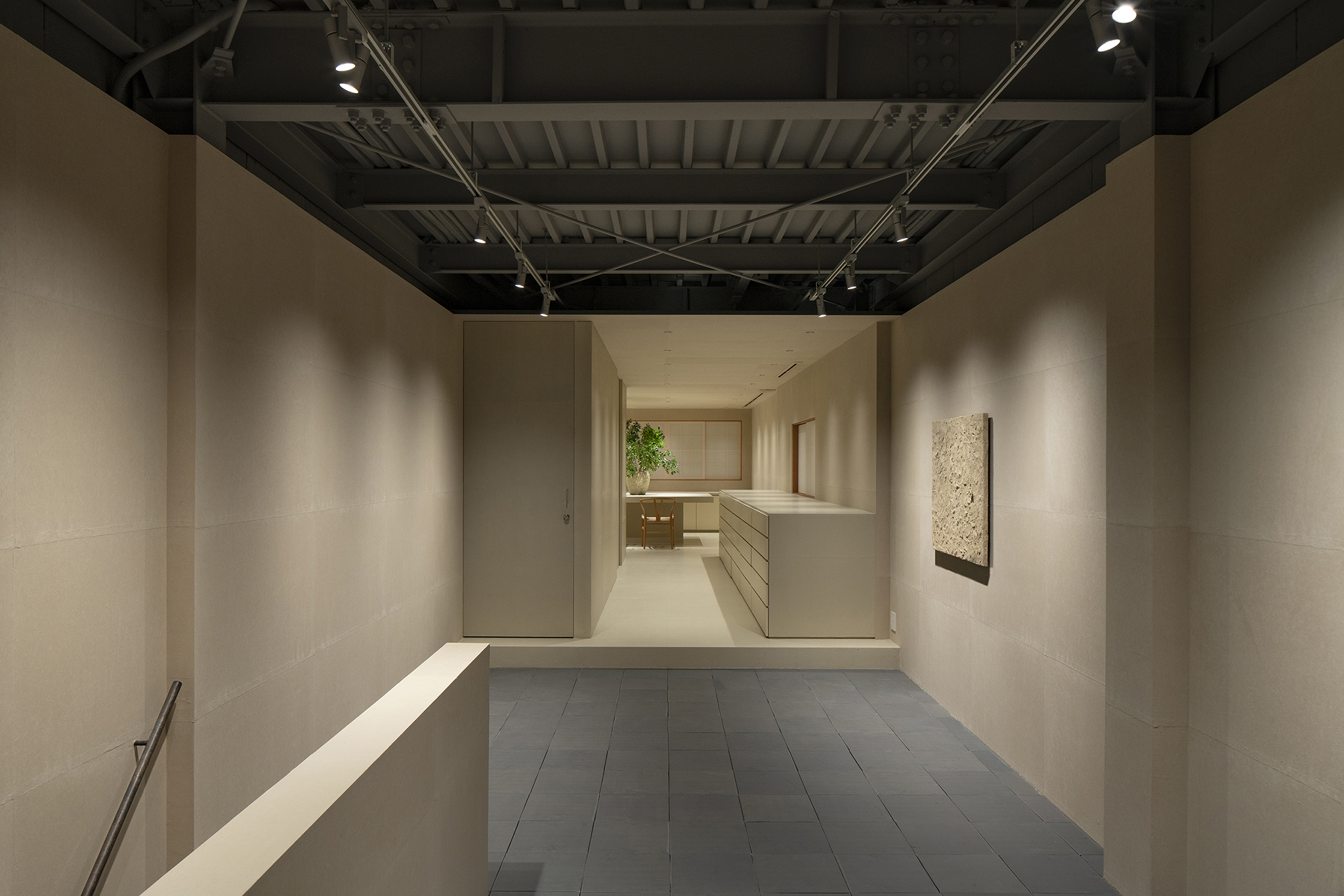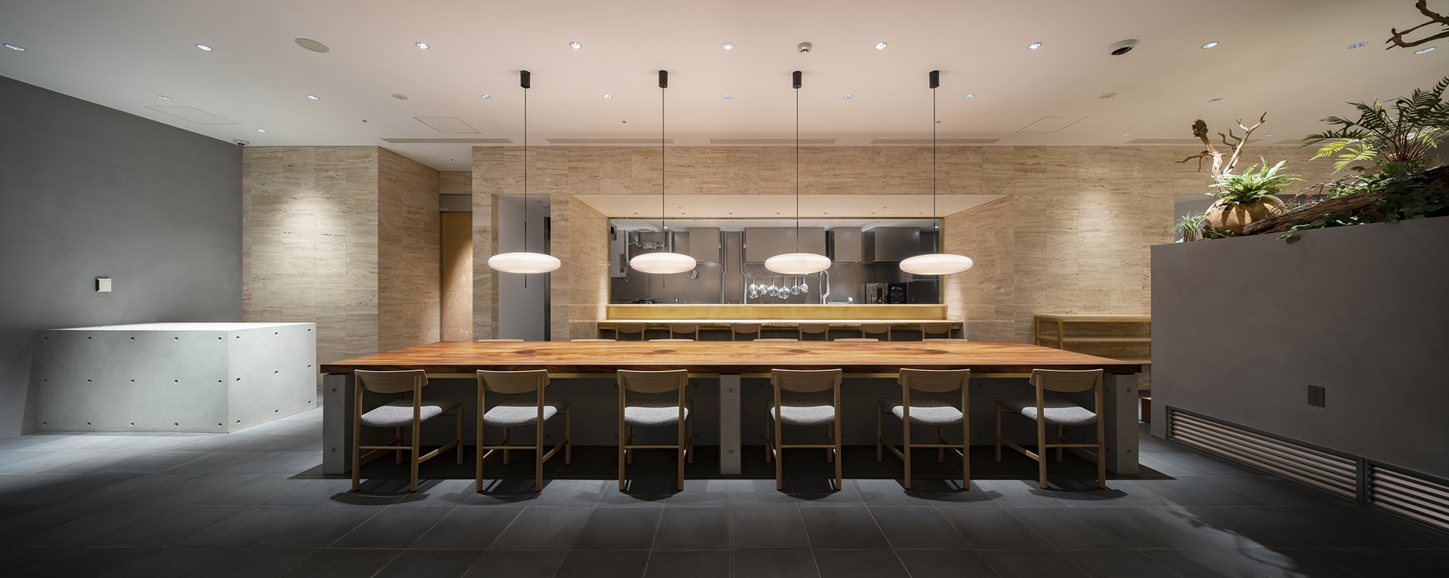 平面をリズミカルにデザインし、直線交差が連続する緊張感のなかにも、素材の持つ豊かな質感が活きた有機的エッセンスがにじみ出る。