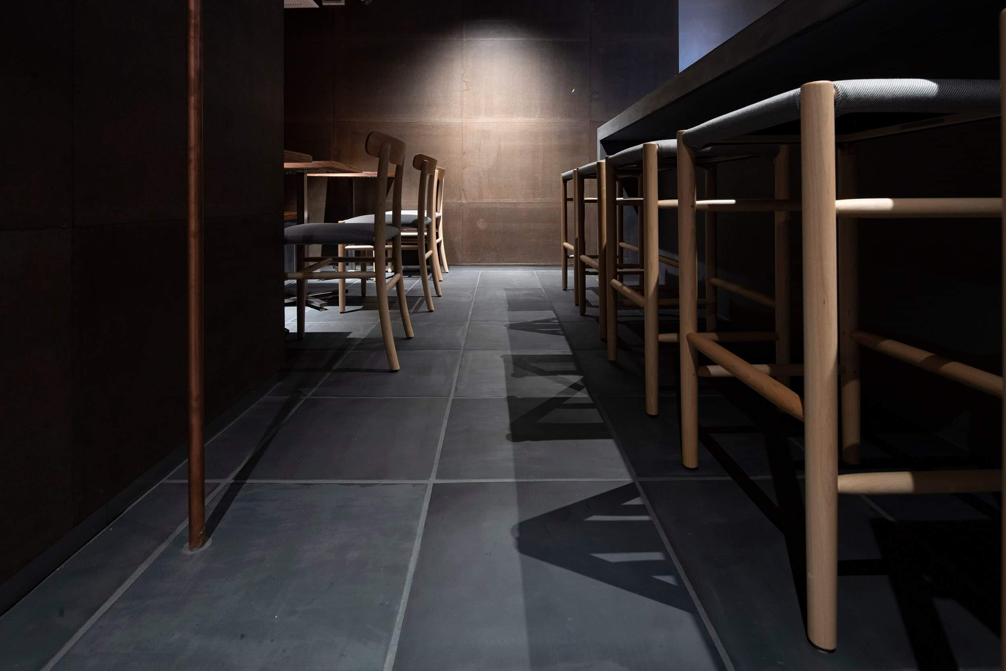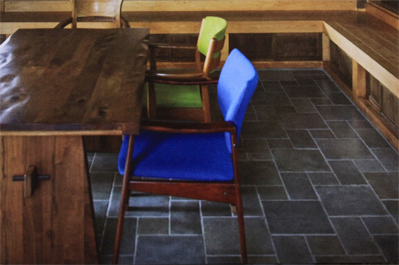 施工後にウエス等で表面にオリーブ油等を塗布し、艶黒い表情をつくることで汚れの浸透を軽減し、将来的なメンテナンス性を向上させることも推奨します。